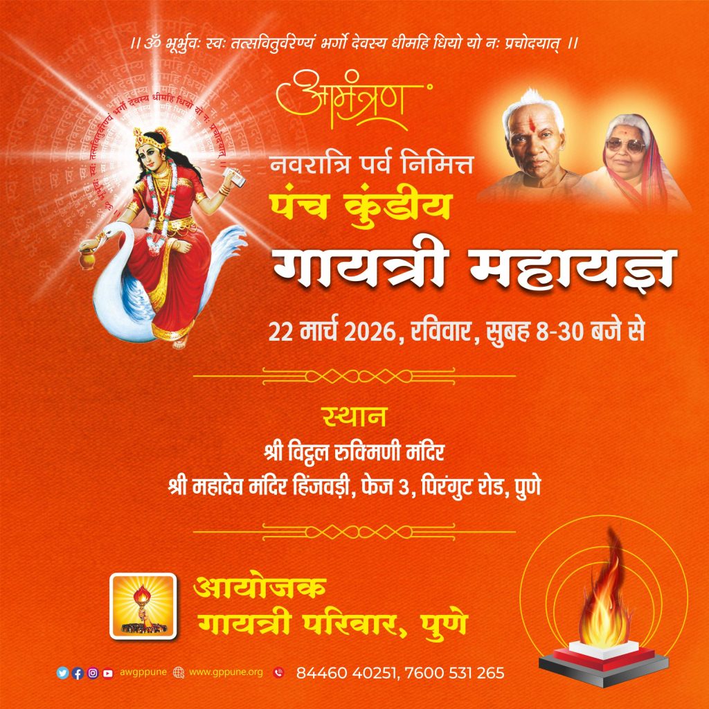 Yagya, Hawan and Sanskar are the root of Indian Culture. These are the scientific process invented by Rishis. Yagya ,hawan & Sanskar are not mere a ritual but having both spiritual and scientific benefits. Sanskar’s are the deeply rooted power in individual which helps building nature and personality of individual. Gayatri pariwar pune conduct yearly and weekly Yagya and Sanskar programs on public places/temples and volunteers of gayatri pariwar goes for yagya/sanskar at individual’s home on request basis.
